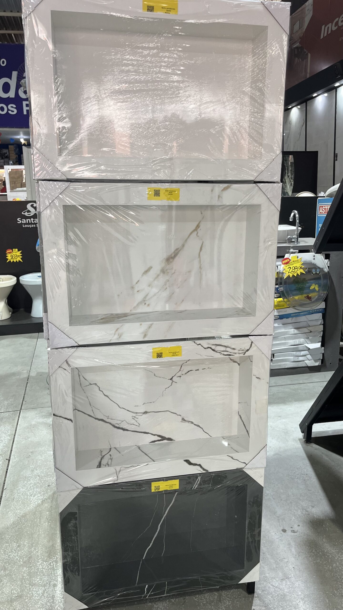 ![Sobre o produto O nicho simples branco marmorizado Kasabelle Elegance apresenta um design sofisticado e funcional, ideal para aprimorar a organização e estilo do seu banheiro. Com dimensões compactas de 35 cm por 65 cm, este nicho se destaca por sua versatilidade e estética moderna. As medidas cuidadosamente pensadas permitem que o nicho se encaixe perfeitamente em espaços de banheiros, proporcionando uma solução prática para armazenar itens essenciais sem comprometer o estilo. A tonalidade elegante confere um toque de sofisticação ao ambiente, adicionando um elemento contemporâneo ao seu banheiro. Esta cor versátil combina facilmente com diferentes esquemas de decoração, tornando-se uma escolha atemporal. Fabricado com materiais de alta qualidade, o nicho Kasabelle é resistente à umidade e durável, tornando-o perfeito para ambientes úmidos, como o banheiro, e garantindo a longevidade do produto. O design inteligente do nicho permite uma instalação fácil e rápida. Seu sistema de fixação robusto assegura que o nicho permaneça seguro e estável após a montagem. Com espaço interno amplo, é ideal para organizar itens de higiene pessoal, como shampoos, sabonetes e outros produtos essenciais. Além disso, o topo plano proporciona um local elegante para exibir decorações, plantas ou acessórios que complementam o estilo do banheiro. O nicho simples branco marmorizado Kasabelle Elegance combina funcionalidade e estética, oferecendo uma solução prática para a organização do seu banheiro, enquanto adiciona um toque de modernidade ao ambiente. [divider] Sobre nós Bem-vindo ao Atacadão dos Pisos, o destino final para todas as suas necessidades de materiais de construção! Com nossa ampla gama de produtos, ajudamos você a construir a casa dos seus sonhos. Nossa loja tem tudo que você precisa, desde pisos até revestimentos e muito mais. Além disso, com mais de 300 modelos de pisos e revestimentos à sua escolha, você encontra exatamente o que procura para dar o acabamento perfeito à sua casa. Entendemos que o tempo é fundamental quando se trata de projetos de construção. Por isso, oferecemos entrega em até 48 horas dentro do estado do Rio de Janeiro. Dessa forma, você não precisa se preocupar com atrasos ou tempos de espera prolongados. Nós temos você coberto! No Atacadão dos Pisos, também proporcionamos opções de pagamento flexíveis para facilitar sua compra. Você pode pagar em até 10 vezes sem juros, permitindo que você se concentre na construção da sua casa sem se preocupar com o encargo financeiro. Queremos fazer parte da sua felicidade, ajudando na construção da casa dos sonhos. Reconhecemos que uma casa confortável e acolhedora é essencial para o bem-estar geral. Por isso, queremos ajudá-lo a alcançar essa felicidade, fornecendo-lhe os melhores materiais de construção. Convidamo-lo a visitar a nossa loja física, onde o nosso pessoal simpático e experiente terá todo o prazer em ajudá-lo na sua compra. Estamos localizados em Av. Presidente Lincoln, 411 ou 410 | Jardim Meriti - São João de Meriti, RJ, e mal podemos esperar para recebê-lo! Venha e veja você mesmo porque o Atacadão dos Pisos é a melhor escolha para todas as suas necessidades, proporcionando uma casa recheada de felicidade para você e sua família. Veja mais como o Nicho Simples Branco Marmorizado clicando aqui !!](https://atacadaodospisosrj.com.br/wp-content/uploads/2023/12/1-7-300x300.png)