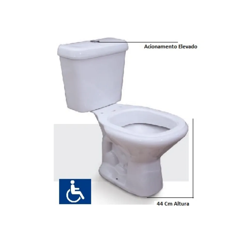 A caixa acoplada possui acionamento simples e eficiente, com capacidade de 6 litros, garantindo economia de água sem comprometer o desempenho da descarga. O modelo é compatível com assento tipo Sabatini (não incluso) e possui saída de esgoto vertical, o que facilita sua instalação em ambientes que seguem as normas de acessibilidade. Sua estrutura robusta oferece durabilidade e estabilidade, tornando-o ideal para uso contínuo em residências, comércios ou instituições. Para completar a instalação, é necessário adquirir separadamente os itens de fixação e vedação. Em resumo, o vaso com caixa acoplada acessível da Santa Clara é uma solução funcional, segura e eficiente para banheiros que priorizam inclusão e bem-estar.